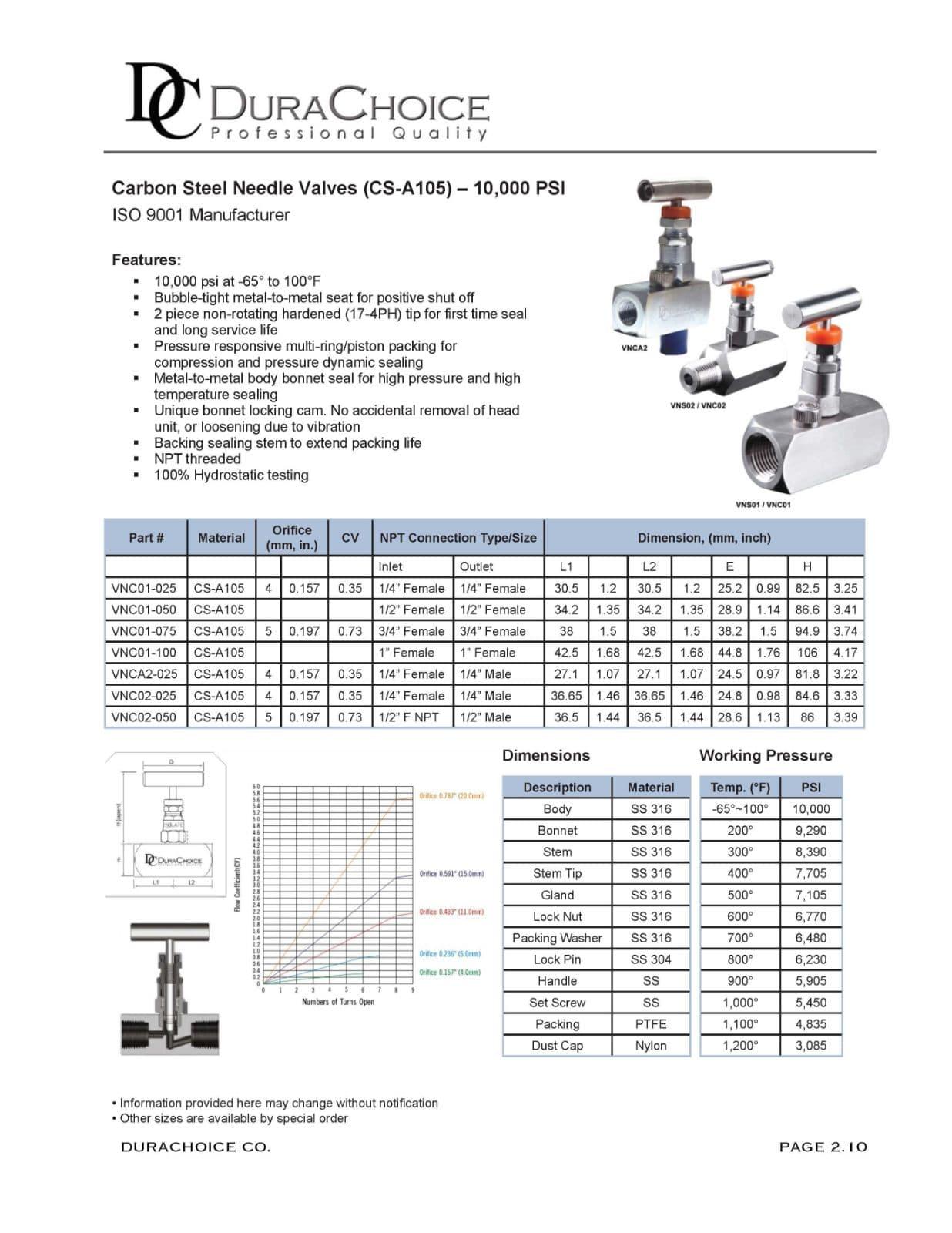 Carbon Steel Needle Valve - Packed Bonnet FxM NPT, 10,000PSI SKU: VNC02 Manufacturer: Durachoice Carbon Steel Needle Valve - Packed Bonnet FxM NPT, 10,000PSIManufacturer: DurachoiceLog in to see price VNC02-025 1/4" Carbon Steel Needle Valve - Packed Bonnet Male to Female NPT, 10,000PSI VNC02-038 3/8" Carbon Steel Needle Valve - Packed Bonnet Male to Female NPT, 10,000PSI VNC02-050 1/2" Carbon Steel Needle Valve - Packed Bonnet Male to Female NPT, 10,000PSI Items:0 | Total:$0.00 Add to Cart DESCRIPTIONReviews 0 BackRatings & ReviewsNo reviews availableBe the first to Write a Review